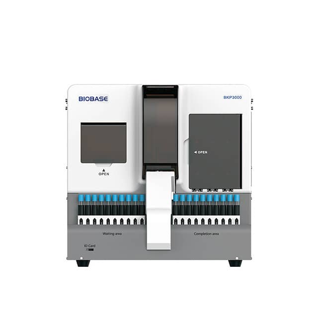 BKP3000 automatic dry fluorescence immunoassay analyzer can realize automatic detection function, automatic sample dilution, automatic identification of reagent items, unique track structure, large reagent card storage, support 30 (3*10) vacuum blood collection tubes directly on the machine, multiple items can be detected at the same time, to achieve automatic detection of the whole process, intelligent Windows operating system, easy and fast operation.